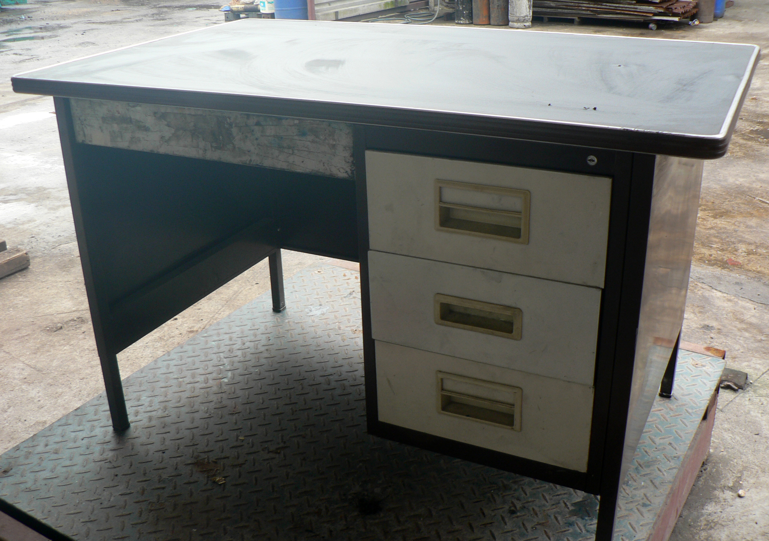 Single Pedestal Desk Black Linoleum Top.